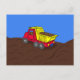 Dump Truck Red and Yellow Cartoon Art Postcard