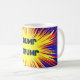 This mug presents a political starburst abstract pattern in red, yellow and blue with the words Dump Trump in the centre. Text can be customised.
