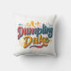 A whimsical and playful design featuring the text "Dumpling Duke" in a hand-drawn, colourful cartoonist font with swirling flourishes. The vibrant colours and playful typography create a sense of fun and excitement.