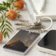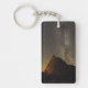 A key ring with a photo on either side of the Broch, Carloway, Isle of Lewis at night with stars and the milky way.