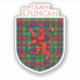 Duncan Scottish tartan plaid pattern design for the Duncan Clan Family underneath the red Lion Rampant Shield of Scotland.
