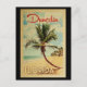 A uniquely retro mid-century modern Dunedin Florida art print in vintage travel poster style. It features a curved palm tree on sandy beach with ocean under a blue cloudy sky.