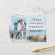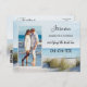 Coastal Save the Date postcard featuring your own (engagement) photo framed by an image of dunes overlooking a beach and ocean. On the back is a QR code template.