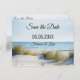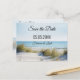 A lovely Save the Date postcard featuring an image of dunes overlooking a beach and ocean. Perfect for a planned beach wedding.