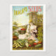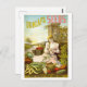 This postcard is a reproduction of a vintage advertisement for Dunlap's Seeds, showing a woman surrounded by fruits and vegetables.