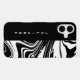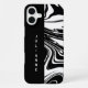 Cell phone case has a solid block of blackon one side and a black and white swirl pattern on the other half. Add an initial, name or other text in vertical orientation in white letters for a more meaningful gift.