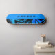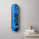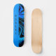 Skateboard has a unique design with solid block of blue on one side and a swirl pattern in blue and black on the other side. Personalise with custom name or text for a great gift idea for those that love skateboarding. The name is in a vertical orientation in black letters.