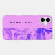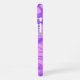 Cell phone case has a solid block of pink on one side and a purple and pink swirl pattern on the other half. Add an initial, name or other text in vertical orientation in black letters for a more meaningful gift.