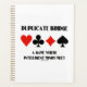 Showcase your wry duplicate bridge attitude with this planner featuring the four card suits along with the saying "Duplicate Bridge A Game Where Intelligent Minds Meet".  Memorable bridge saying planner for any avid duplicate bridge player!