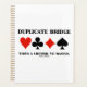 No need to be a Lifemaster to enjoy this duplicate bridge humour planner featuring the four card suits (heart, club, diamond, spade) and the duplicate bridge truism "Duplicate Bridge Takes A Lifetime To Master". Make everyone do a double-take on exactly what this saying means with this bridge expression planner today! Memorable bridge saying planner for any Lifemaster or bridge player en route to Lifemaster ranking.