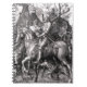 Albrecht Durer Knight Death and the Devil notebook. Woodcut engraving from 1513. One of Northern Renaissance artist Albrecht Durer’s most famous engravings, Knight Death and Devil is an allegorical work featuring a northern European knight riding in full armour on a horse flanked by Death, who holds an hour glass, and the devil in the form of the a goat. The work represents the Christian struggle against time and temptation. A great gift for fans of Albrecht Durer, Northern Renaissance Art, Woodcut Engravings, and knight and mediaeval depictions.