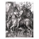 Albrecht Durer Knight Death and the Devil print. Woodcut engraving from 1513. One of Northern Renaissance artist Albrecht Durer’s most famous engravings, Knight Death and Devil is an allegorical work featuring a northern European knight riding in full armour on a horse flanked by Death, who holds an hour glass, and the devil in the form of the a goat. The work represents the Christian struggle against time and temptation. A great gift for fans of Albrecht Durer, Northern Renaissance Art, Woodcut Engravings, and knight and mediaeval depictions.