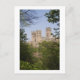 Photograph of Durham Cathedral taken from high up the river bank in springtime framing the Cathedral through the trees