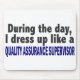 Funny “During The Day, I Dress Up Like A Quality Assurance Supervisor” t-shirts, apparel, and gifts especially for quality assurance supervisors. Unique birthday or Christmas gift idea for that hard-to-get-for quality assurance supervisor on your list!