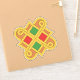 This knotwork design illustration is based on interlace designs seen in the 7th century Insular (aka Hiberno-Saxon) illuminated manuscript known as the Book of Durrow. Here the centre diamonds are in Christmas red and green.