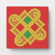 This knotwork design illustration is based on interlace designs seen in the 7th century Insular (aka Hiberno-Saxon) illuminated manuscript known as the Book of Durrow. Here the centre diamonds are in Christmas red and green.