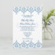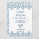 Beautifully decadent Wedding invitation in dusk blue and white. Detailed damask border is printed top and bottom of this wedding invite with full dusk blue and white pattern on the back. This is perfect if you are having an elegant bridal shower, wedding or event. Feel free to change the wording, font type etc in the 'Customise it' menu. If you need any assistance please contact me through the link above :-)