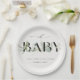 Dusky Leafy Fern Succulent Script Oh Baby Shower Paper Plate