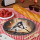 In this captivating scene, a baseball player stands poised at the plate, With a fierce concentration and an explosive swing, he makes contact with the baseball, sending it soaring into the night sky. The impact is so powerful that it kicks up a massive cloud of dust from the infield, creating a dramatic visual that perfectly captures the intensity and excitement of America's pastime. This moment embodies the raw energy and skill of the game, showcasing the player's prowess while simultaneously reminding us of the beauty and chaos that comes with each swing.