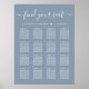 Stylish dusty blue wedding seating chart sign for up to 16 tables featuring "find your seat" in a chic script with swashes, your names and wedding date joined together by a heart and the table numbers and guest names in simple white typography. The digital download option allows you to edit with last minute changes and print locally.