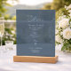 This dusty blue acrylic drink menu sign adds a refined and stylish accent to your wedding day décor.