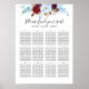 Dusty blue and burgundy red watercolor floral wedding seating chart
