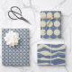 A selection of Dusty Blue and cream patterns on this set of three sheets of gift wrap. Comes in Glossy or Matte