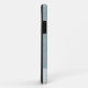 Cream coloured vertical stripes, decorated with an abstract floral or leaf pattern, on a dusty blue background, creates a vintage wallpaper appearance that is beautiful on this iPhone case.