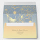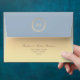 Simple, elegant, modern dusty blue wedding 5x7 envelope with gold floral inside, return address and monogram at the top back.