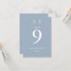 These chic modern dusty blue and gold wedding table numbers can be personalised with your monogram initials, names and special date. Designed by Thisisnotme©