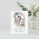 Dusty blue and gold glitter floral save the date photo postcards