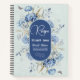 Modern elegant Dusty Blue and pink Floral Recipe Notebook. This stunning notebook features a blue frame and watercolor floral dusty blue flowers with butterflies over dusty blue green splash background . You can easy customise and add your name and date in white. This will be the perfect keepsake gift for any bride-to-be.