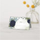 Romantic dusty blue and navy blue flowers with beautiful green leaves botanical place card