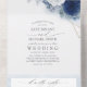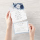 Dusty Blue and Navy Flowers Elegant Modern Wedding All In One Invitation
