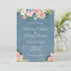 Dusty blue and peach blush rustic floral wedding invitation