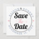 Black, dusty blue and pink typography and hearts Save the Date announcement with photo on the back.