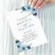 This elegant wedding invitation features hand-painted floral watercolor in dusty blue, grey and green