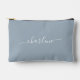 Dusty pink and white elegant signature script name accessory bag for your bridesmaids.