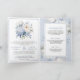 Dusty Blue and White Floral All in One Wedding Invitation