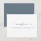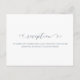 Simple and chic dusty blue and white wedding reception card with beautiful calligraphy script.