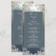 Immerse yourself in the enchantment of our event with our exquisite menu and program card, seamlessly blending art deco ornate frames and serene dusty blue and white tones. Designed with simple elegance and modern classic sophistication, this card offers a formal and classy guide to the festivities. Explore the vintage ornate frame details as you peruse the menu offerings, each dish curated to delight your palate. Then, immerse yourself in the program, where playful romanticism inspired by generative content infuses every moment with whimsical charm.