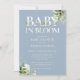 Dusty Blue Baby In Bloom Greenery Baby Shower Invitation