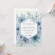 Delicate blue blossoms and soft green foliage create a serene and romantic atmosphere. This design evokes a feeling of airy elegance with its muted color palette. The gentle floral arrangement offers a sophisticated touch.