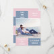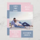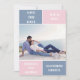 Dusty blue and blush pink colour block wedding Save the Date card. The back includes a pattern with wide bands in dusty blue and blush pink.
