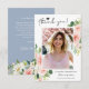 Dusty Blue Blush Pink Floral Graduation Photo Thank You Card