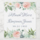 Design features an elegant bouquet of succulent watercolor elements, light pink, ivory and white roses, eucalyptus and other greenery. Botanical elements are hand painted in shades of dusty blue, light green and other similar matching garden colours.
