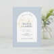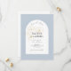 These modern minimalist dusty blue wedding save the date postcards feature a boho arch, delicate imitation gold floral elements and a contemporarty set of fonts in jet black. Flower detail is repeated at the back alongside optional text. This design is contemporary and chic. Perfect for the stylish and elegant couple.