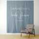 A minimalist boho bridal shower backdrop that features a dusty blue colour palette and modern design.