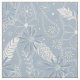 This pretty boho style fabric features a pattern of hand-drawn feathers, flowers and paislies in white on a dusty blue background with lighter and darker blue accents - by katz_d_zynes