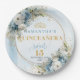 Perfect for a Quinceañera or 15th birthday party, these plates can be personalized with a custom name, making your celebration feel truly one of a kind. The soft blue palette pairs effortlessly with romantic floral themes, gold accents, and greenery-inspired décor, creating a cohesive and photo-ready tablescape.